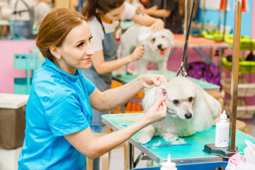 The breeder initially trims the puppy’s claws, washes, and dries them with a hairdryer, getting them accustomed to the grooming procedures. You should visit a professional groomer after all mandatory vaccinations are completed, which is 14 days after the last vaccination, typically around four months of age.